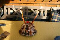 Gegen 19 Uhr gab es ein festliches Menü von Mozarella mit Tomaten über Schweinemedallions in Schinkenspeck bis zu Hähnchenflügeln mit Zimt, was allen zur vollen Zufriedenheit mundete.